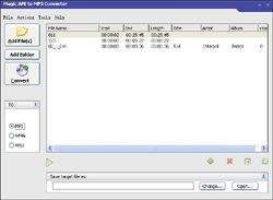 Magic APE to MP3 Converter is a powerful APE batch converter that can convert APE files(Monkey's Audio) ,to MP3 and WMA,WAV files. The program is very easy to use, just select the files and output format.
