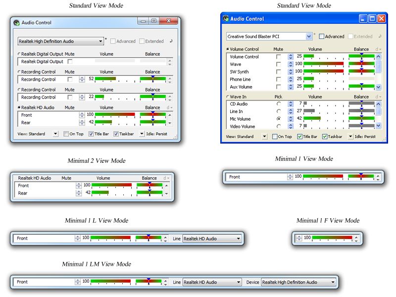 Audio Control is an audio mixer software utility for visualization and control of the computer audio volume, and is an improved substitution for the standard Windows Volume control. Audio Control inspects the host system for audio devices and displays them, and their audio controls, in a manner that is convenient to view and operate. Ergonomic and functional, Audio Control is designed to allow all kinds of customizations to save space on the work area of the screen and on the taskbar, and at the same time assisting the user to operate the sound devices on the system in the easiest and most efficient way possible. Audio Control is particularly useful for its improved precision, ease of access interface and idling features.