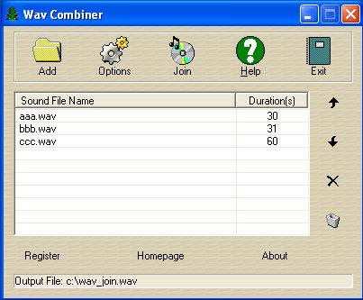 Wav Combiner is an easy-to-use toole to join merge combine several wav files into bigger wav format, Wav Combiner can join wav or wave files into one large wav file. No matter what input wav formats are, such as different sample frequency, channels or bits per sample, Wav Combiner can merge or join them to one wav file with same parameter. You can download the trial version of Wav combiner freely. (Wav or Wave is short for waveform-audio format.)