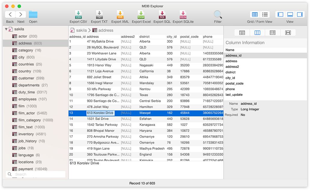 MDB Explorer - MDB tool to read, view and export Microsoft Access files on Mac - Download now 2.4