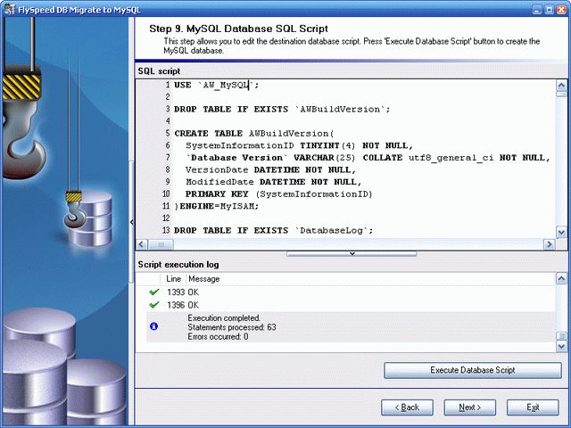 Migrating a database structure in MySQL is no easy job. Too often experienced admins decide to move by hand because the tools for automatic migration fail to offer them the required level of control and transparency. With FlySpeed DB Migrate, you gain control you want. The generation of an SQL script that creates the database structure on the target server, is totally controlled by the admin. He can change the structure of the objects using visual tools and make changes by hand. In case errors occur during the execution of the script, the admin can correct an expression that caused an error and continue running the script from where it stopped.