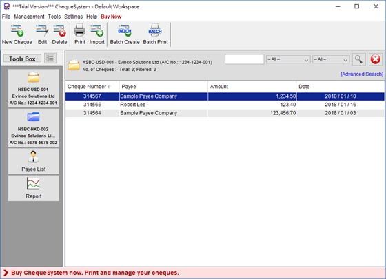 cheque printing, cheque management, cheque software, batch printing, recurring payments, chequebook management, accounting software, financial software, payment processing, business software, multiple cheque books, one-time purchase, ChequeSystem |