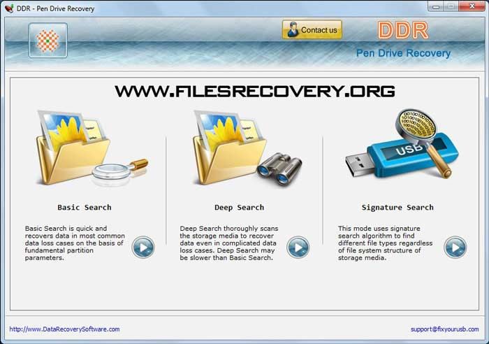 www.filesrecovery.org represents Pen Drive File Recovery Utility that helps you in regaining data files from accidently formatted USB memory card reader without any technical knowledge. Jump drives retrieval program used to retrieve all major file systems like doc, txt, bmp, jpeg and lots more from portable USB derives.