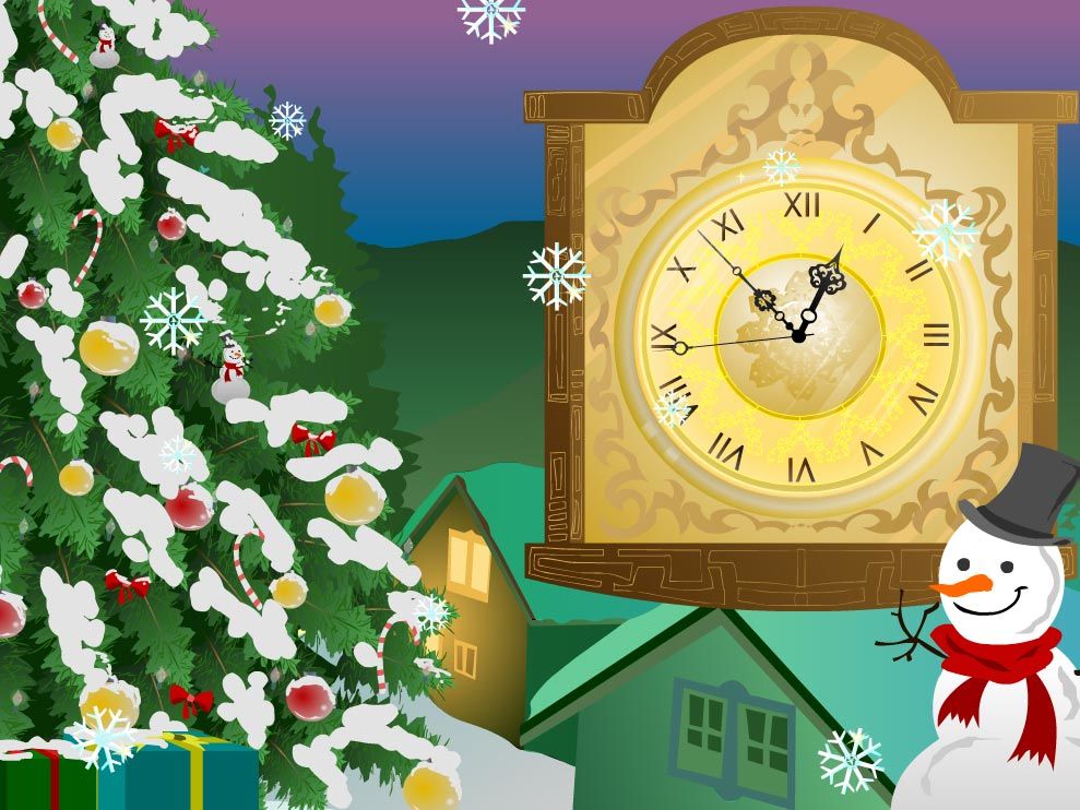 screen, saver, desktop, image, picture, amazing, screen, flash, clock, watch, time, clock, be, here, now, happy, face, hand, Snow, living, christmas, tree |
