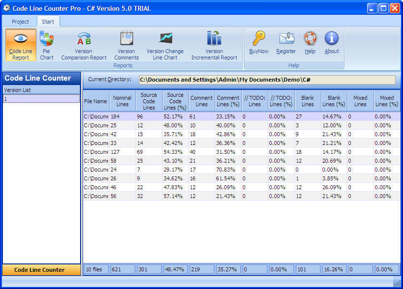 This easy-to-use application will help you get detailed reports on the source code.With the help of Code Line Counter Pro you can quickly and easily get a report on software source code in C#.