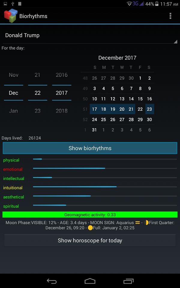 Biorhythms, Horoscope, Moon, Geomagnetic