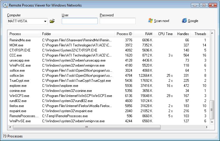 Free Remote Process Viewer download - 228 KbRemoteProcesses.exe