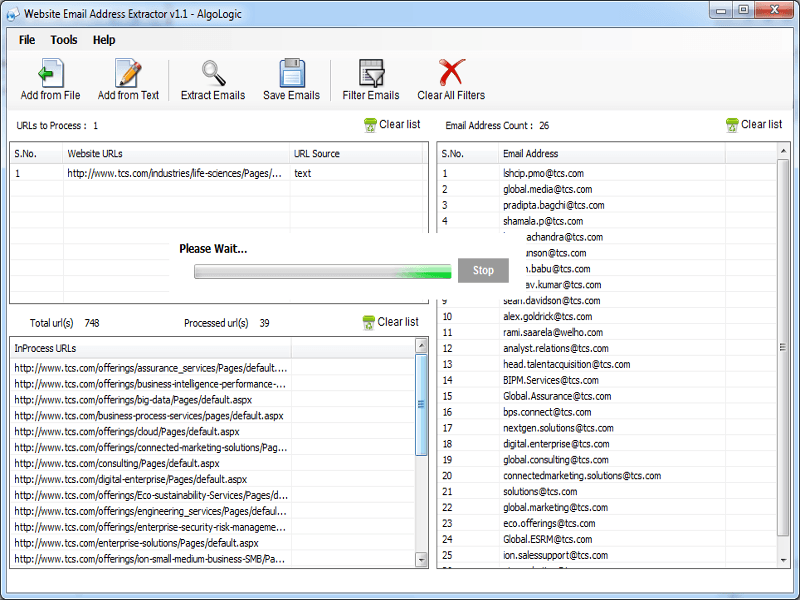 Website Email Address Extractor is the fast email address finder software for website online. It extracts email addresses from websites and inner web-link found in websites up to defined nth level recursively. It allows you to set website crawl level in settings as per your requirements. A super Web Email Extractor which implemented fastest website pages crawling and email addresses searching algorithm to give you a best result in few mouse clicks.