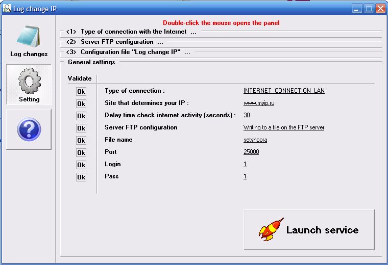Perhaps many people faced with the problem of tracking the process of changing IP address online. This problem is inherent to the owners of a dynamic IP address Internet. Occurs when running server applications (programs that connect to other processes on the Internet. This process is required for connection IP and server port). This problem also for users of the program "Online Assistant server", and occurs when changing the IP Internet, and can not connect your phone to the computer's. Because you need to know IP address connection. This program solves the problem of "Log Change IP", which after running continuously monitors the process of changing IP, and in case of the process, writes the report changes to a file on an FTP server, according to your data. Further, these new settings can be read in a mobile application "ClientShpora", using the "Table Servers" general settings of the mobile application "ClientShpora".