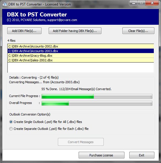 Converting .DBX into .PST no more requires you to fetch some technical help, whatever help is needed, all would be easily provided upon by the .DBX File Converter. While Converting DBX to PST File the status of the file (configured or otherwise) ceases to matter. Converting .DBX into .PST with multiple files is no big deal either, the facility of batch conversion is well provided for. Convert from DBX into Outlook with the complete email settings (inbox, outbox, drafts, etc). The meta data (to, cc, bcc, etc) and email formatting (HTML, RTF, etc) are included in the conversion, as well. There is also the facility of free demonstration, where you get to convert 10 mails from DBX into Outlook PST. The licensed version costs $69.