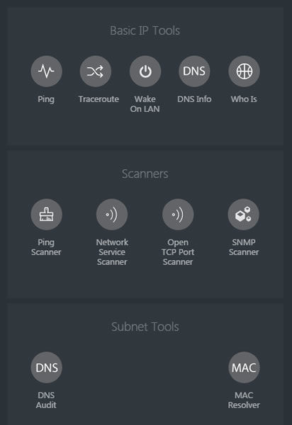 NetCrunch Tools is a completely free toolkit for network professionals, featuring Ping, Traceroute, Wake OnLAN, DNS Info, Who Is, Ping Scanner, Service Scanner, Open TCP Port Scanner, SNMP Scanner, DNS Audit and Mac Resolver in one.