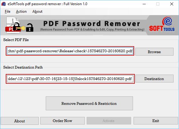 Get eSoftTools PDF password remover program that will helps you to remove password from PDF file. It is the best and finest solution to remove PDF password. All consumers can great fully remove PDF file password protection with the help of PDF file password remover program. With the help of this PDF file password unlocker to unlock PDF file password and remove PDF file password correctly. All consumers can successfully remove PDF file password and break PDF password with best features. Software has great ability to unlock PDF file password and remove PDF file password in correct manner.
