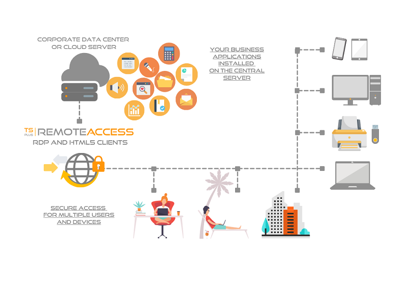 Easily publish your applications on the Web and connect to your server from any Windows system, any browser on any device, including mobile, Mac and Linux. TSplus is the fastest and easiest way to deliver intuitive and seamless access to existing Windows applications and desktops to your remote users anywhere, whether they are home or commuting.