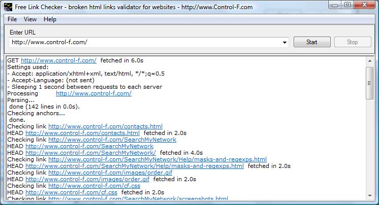 The program includes HTML links spider and broken link analyzer. Free Link Checker provides various settings for broken link check, displaying invalid links report, tracking progress, setting up authentication (username and password) and proxy. It is possible to analyse links from the selected domain only, get only a summary of broken links, or receive a full report on dead or obsolete URLs (originating from a href, img, etc. HTML tags), invalid HTTP redirects, directory redirects, forbidden links, etc.