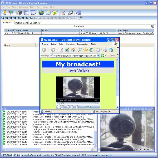1AVStreamer supports all types of Internet connections. Broadcasting encoders are fully configurable, and copies of the broadcasts can be kept on the hard drive. Video output can range from low to high definition.