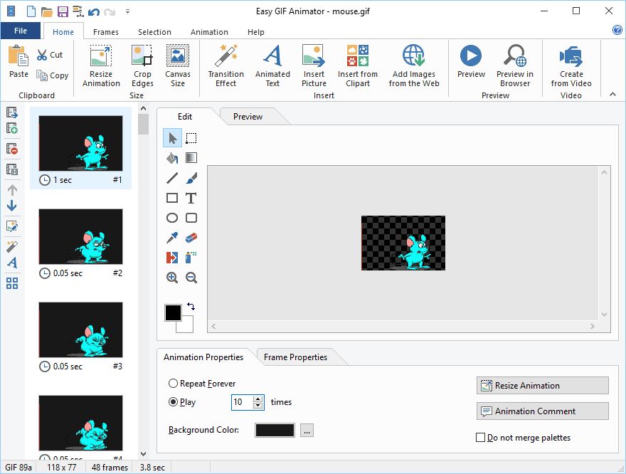 Easy GIF Animator is a powerful yet very easy to use software for creating animated pictures, banners, buttons and GIF videos. With this animated GIF editor you can easily create animated pictures. You can also create animated GIFs from video files. You get extensive animation editing features, animation effects, unmatched image quality and file size reduction.