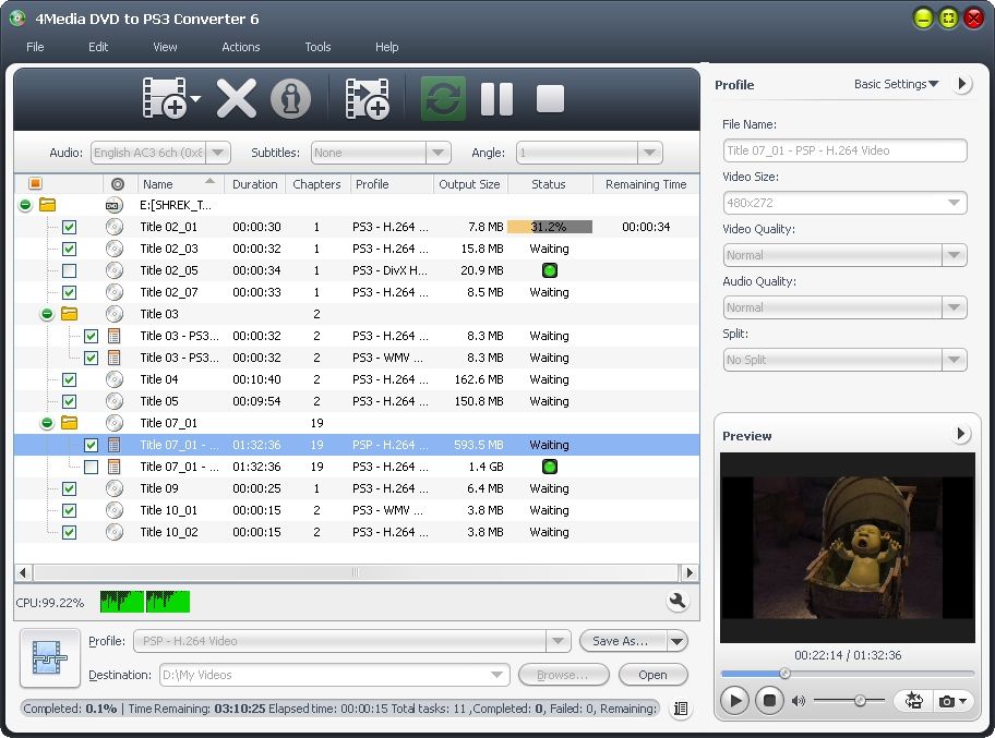 Convert DVD to PS3 video MP4 and audio MP3.