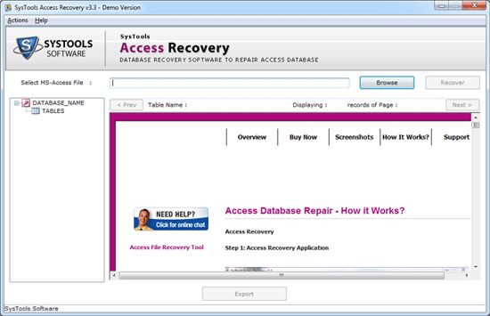 Access File repair tool will repair your mdb and accdb file which will damage by improper system shutdown. Database Fix software is based on easy graphical interface to Fix Access Database easily. Due to this easy interface there is no any technical knowledge required to use this awesome access file repair software to fix access file. Access Database Fix program is the complete recovery solution to fix MDB file. Access File Repair tool can fix Accdb file perfectly without any data loss. Access File Repair software is the well designed application program to provide easy solution to access users for troubleshooting any error situation related with their access database. Trail version of Access Database Fix software is available to download for free to fix access file. You can get the full license version of Access Database Fix tool to fix corrupt access file just for 69 USD.http://www.accessfilerepair.net/fix-access-database.html
