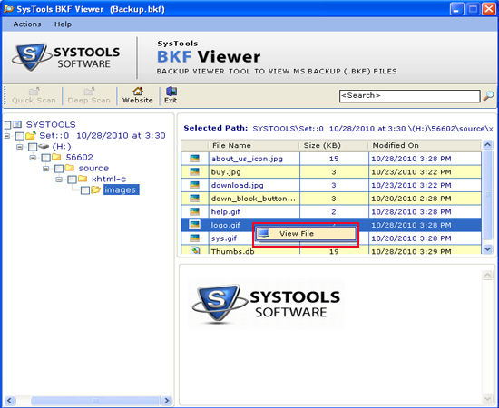 Free View Contents of Backup File download - 843 Kbsystools-bkf-viewer.exe