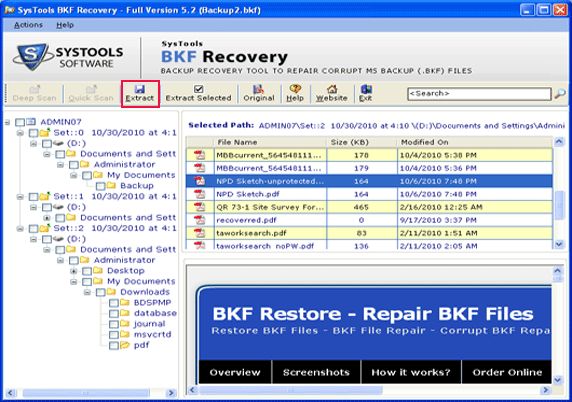 In the globally competitive market to recover backup file we need most power tools that can repair corrupt BKF file in well resource way so our company has designed system backup recovery tool. This is an adept solution available at our organization for perfect corrupt backup system recovery, no matter what is the reason behind BKF file corruption or inaccessibility of BKF file issues. BKF repair tool has advanced scanning option like, Quick, Deep and Range Based scan that provide you ease to choose the appropriate option for BKF file recovery according to your need. System backup recovery tool removes all inconsistencies present in the BKF Files stored in the Backup system and helps the user to have a preview of the file to be extracted before initiating the BKF recovery process. You can test the functioning of backup recovery tool by downloading this tool from our website. To order a full version, you need to pay $89 which is the appropriate price of this tool.