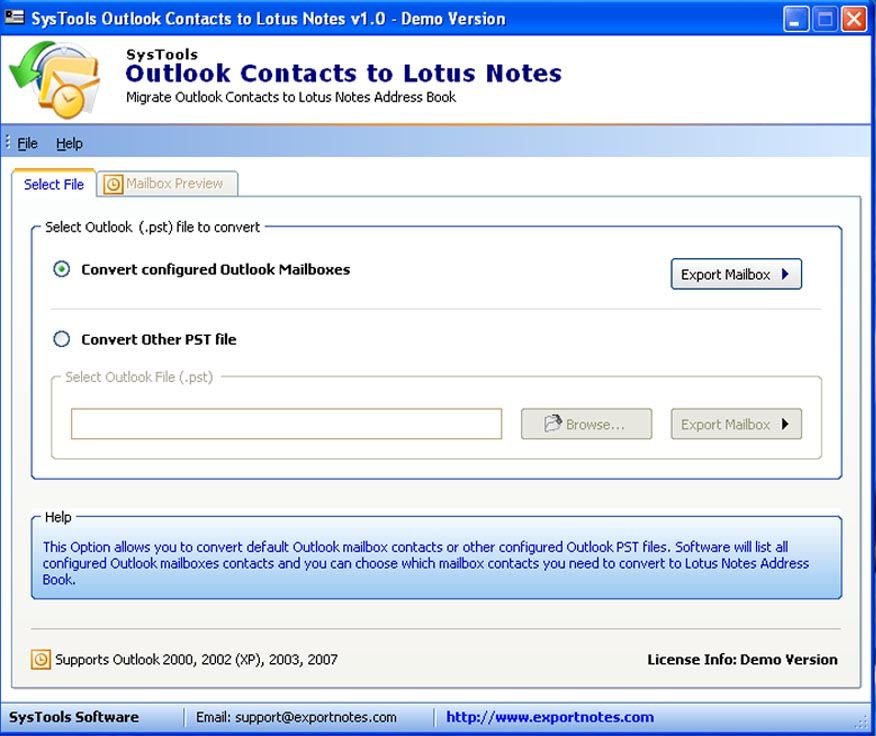 Free MS Outlook to Notes Contacts download - 3.28 Mbsystools-outlook-contacts-to-lotus-notes.exe