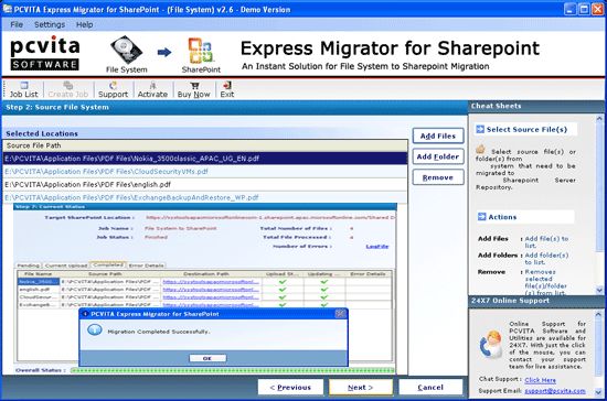 Absolute File Share to Sharepoint server without losing original database then simply use PCVITA Sharepoint Migration software effortlessly move all database from file share to sharepoint including documents, folders, link, application, document library etc. You can also completely Move file share to sharepoint 2010, sharepoint 2007 and sharepoint 2003 don??™t worry PCVITA company lunched excellent performance tools for Sharepoint Migration software that 100% result to productively migrate documents library, folders, files from File Share to Sharepoint without losing original database at much time. File Share to Sharepoint Migration software provides you free demo facility, by Purchase PCVITA Express Migrator for Sharepoint software easily move steps by steps file share to sharepoint documents library.