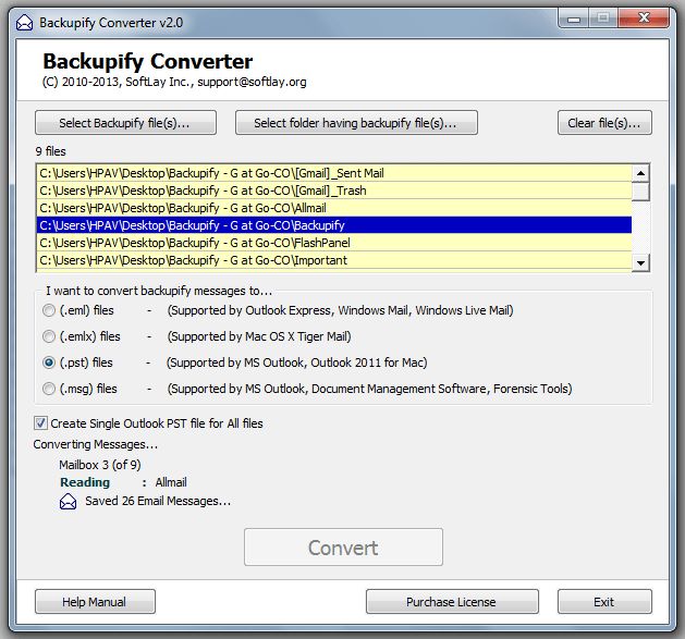 Use Export Google Apps Email to PST File Format Converter software, a multifaceted utility for migrating MBOX files of multiple email clients such as Thunderbird, Entourage, Apple Mail, Eudora and Evolution mail email client into PST format. With this effective Export Google Apps Email to PST File Format utility, you can convert as many MBOX files you want in a single conversion cycle. Moreover, it is fixed with the several options such as To, From, Date and subject on the basis of which MBOX files are converted in PST. Extract benefits by downloading the free evaluation version of Export Google Apps Email to PST File Format. It is embedded with the exact functioning as that in the full licensed version. You can try or evaluate the working capability of software before purchase the software form our website. Demo will allow you to export your 20 mails backupify to Outlook PST format. After it you can purchase the software from our website by paying some money.