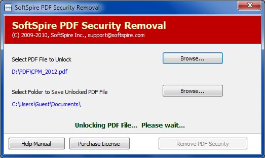 Free PDF Print Restriction Remover download - 1.51 MbSoftspirePDFSecurityRemoval.exe