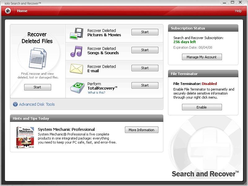 undelete, unerase, recover, file, email, un-delete, delete, un-erase, unformat, disk, drive, e-mail, image, CD, DVD, search, iolo, utility, free |