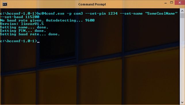 Using itf, you can configure pairing PIN, bluetooth device name, and serial baud rate of the connected bluetooth module.