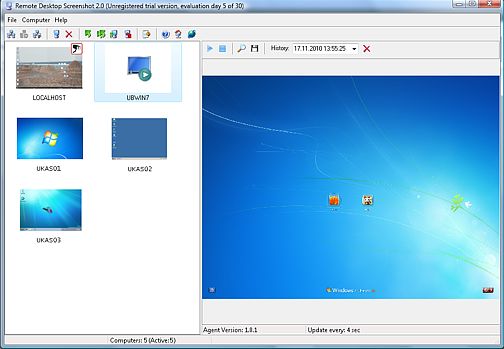 Remote Desktop Screenshot allows you to capture remote desktop screenshots. You can see all users' desktops at once. With built-in scheduler you can set time for update screenshots for all computers or for certain computers.