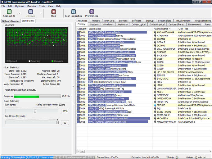 Network inventory your entire network in minutes for free! Scannable information includes Machine Name, Group, IP Address, MAC Address, MAC Address Vendor, Operating System & Type, Ping time, Username, Network Comment, Service Pack, CPU type, CPU speed, Logical CPU count, total Physical Memory, Clock/Time of Day and Uptime. Export data to CSV, HTML, or plain text files.
