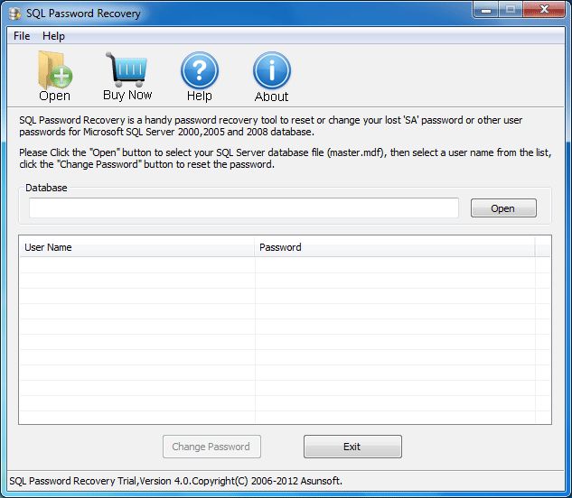 Forgot SQL Server SA password? SQL Password Recovery can help you reset SA password or other user passwords for Microsoft SQL Server 2000,2005 and 2008 database regardless of length and complexity of the password. Unlock password-protected databases master.mdf file instantly! No need to reinstall SQL Server, No data or files lost. 100% security is guaranteed.