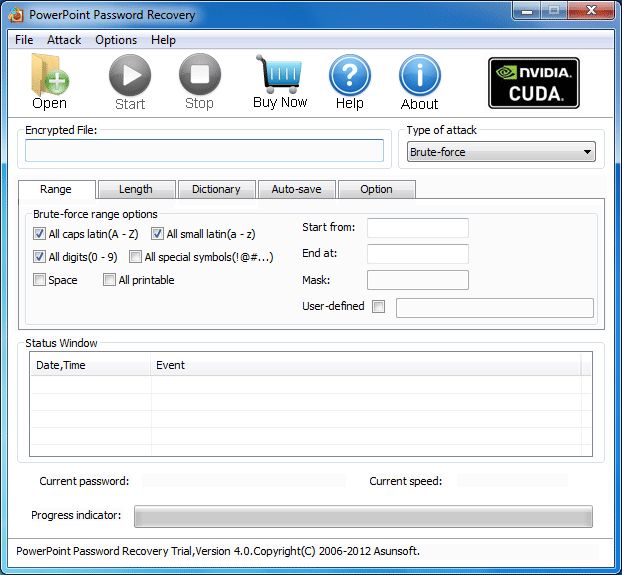 1. Recover PowerPoint password regardless of your encrypted PowerPoint file size. 2. Multi-core CPU acceleration technology. The more CPU cores you have, the faster recovery speed you will enjoy. 3. Program Priority is available to allocate more CPU power to PowerPoint Password Recovery that speed up efficiently. 4. Support NVIDIA-GPU to acceleration technology. Greatly increase the password recovery speed.