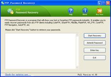 FTP Password Recovery is a program to recover logins and passwords for all FTP accounts stored by FTP client software. It's very easy to use and works with CuteFTP, SmartFTP, FileZilla, FlashFXP, WS_FTP, CoreFTP, FTP Control, FTP Navigator, FTP Voyager, WebDrive, SecureFX, AutoFTP, 32bit FTP, BulletProof FTP, Far Manager, etc. All passwords are recovered instantly.