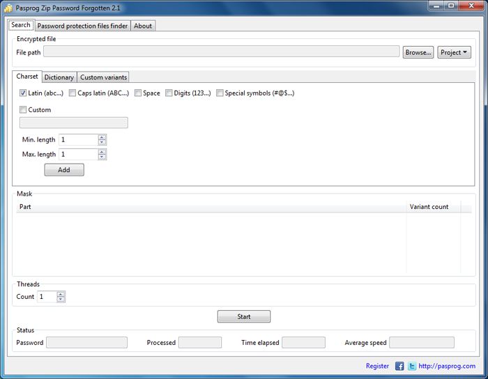 This small and very simple utility will help to remove password from zip archive if the user has forgotten it or lost it. With this software you can very quickly find the required password, no matter how many files are included in the ZIP archive. The program interface is intuitive and contains several tinctures for the most effective search, for example, the user can specify the type of characters included in the password and its estimated length.