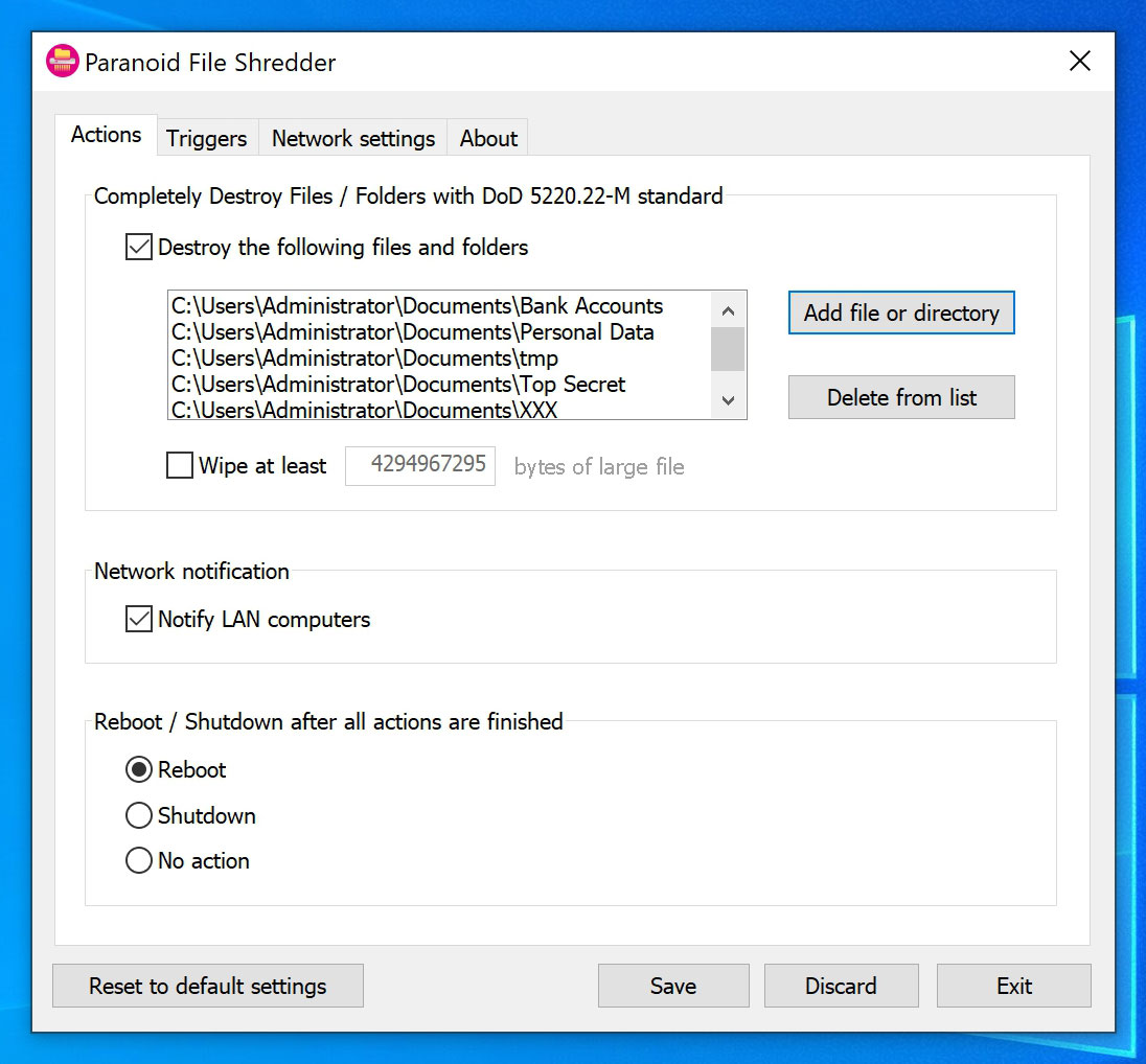 Paranoid File Shredder, file eraser, DoD 5220-22.M, LAN, Hotkey |