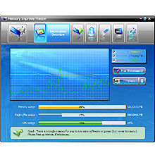 Memory Improve Master is an intellectualized and easy-to-use application designed to optimize and monitor system memory. It frees up and compresses system memory to make processes run faster and crash less often. Powerful features include the ability to view and monitor data of RAM memory, paging file usage and CPU usage in real time, set parameters RAM optimization, display running processes on you PC, etc.