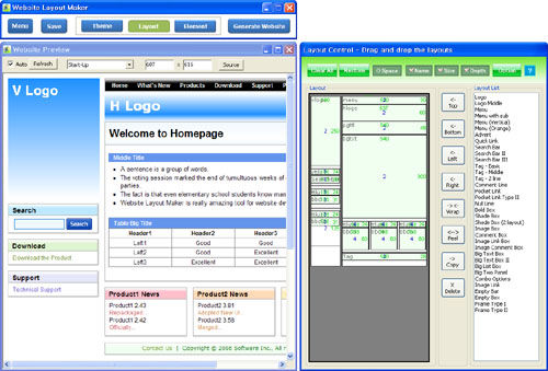 You can create amazing website quickly and easily with Website Layout Maker. Just drag and drop layouts for creating a website. It reduces the effort needed to make website. You can also easily edit because the created site is fully div-tag-based. It provides three stages, Theme, Layout and Element. Theme stage, pick a theme from various pre-made themes. Layout stage, set, resize and copy layout easily. Element stage, provide powerful and various options such as shading background. You can use all these stages with practical page preview. The website made by Website Layout Maker provides uniform for IE 6-8, Firefox 2-3.X, Opera 9-10.X, Safari 3-4.X and Chrome 1-3.X and any version and any web browser that compliant web standard. It really saves your valuable time.
