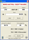 Calculate the percentage of any number out of any number. Add percentage to an amount or calculate a discount percentage. For tip calculation. Figure the selling price after a discount was applied.