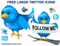 Free Large Twitter Icons picture a famous Twitter bird in a variety of styles and situations. The set also includes icons for a Twitter sign.